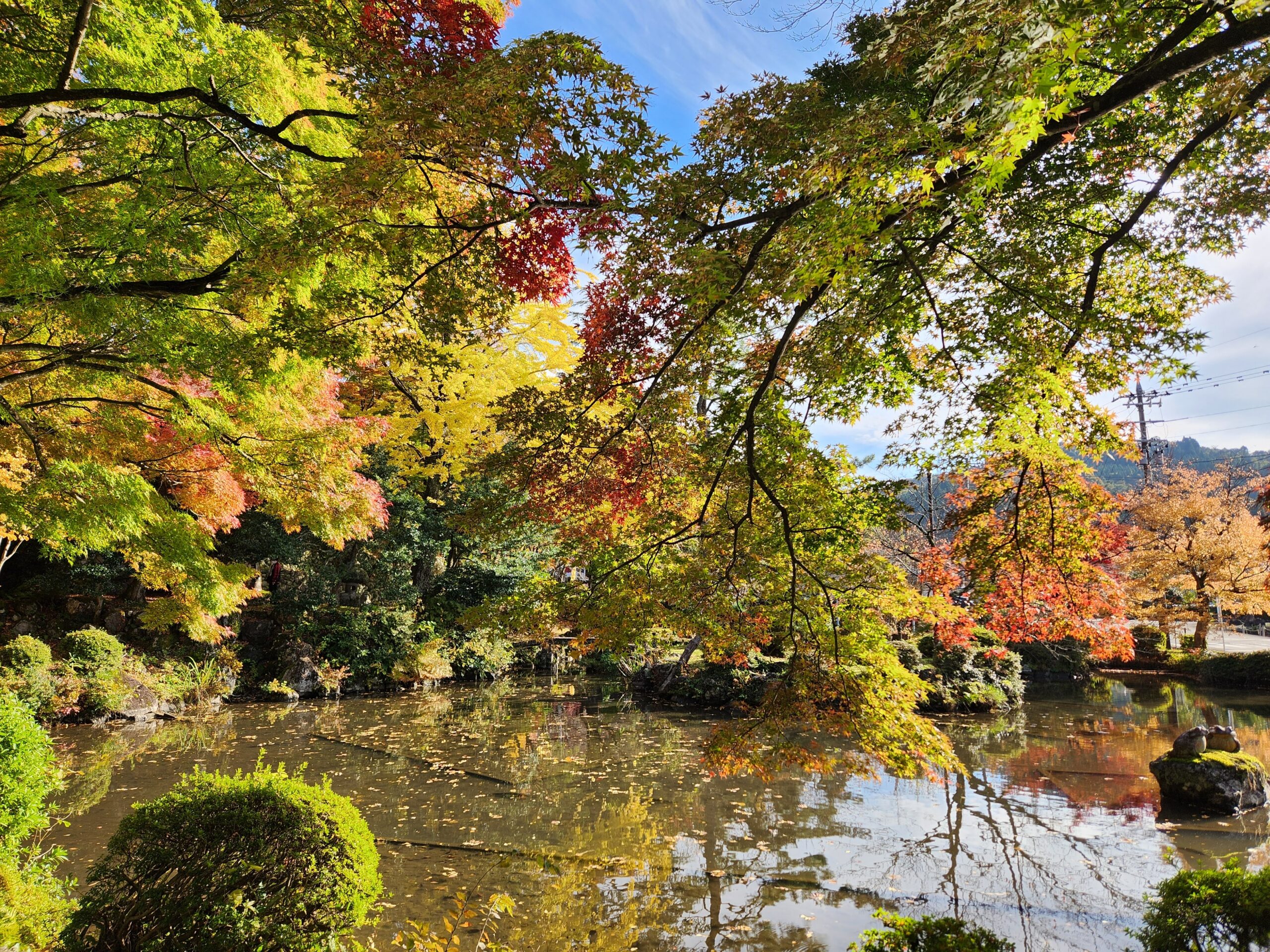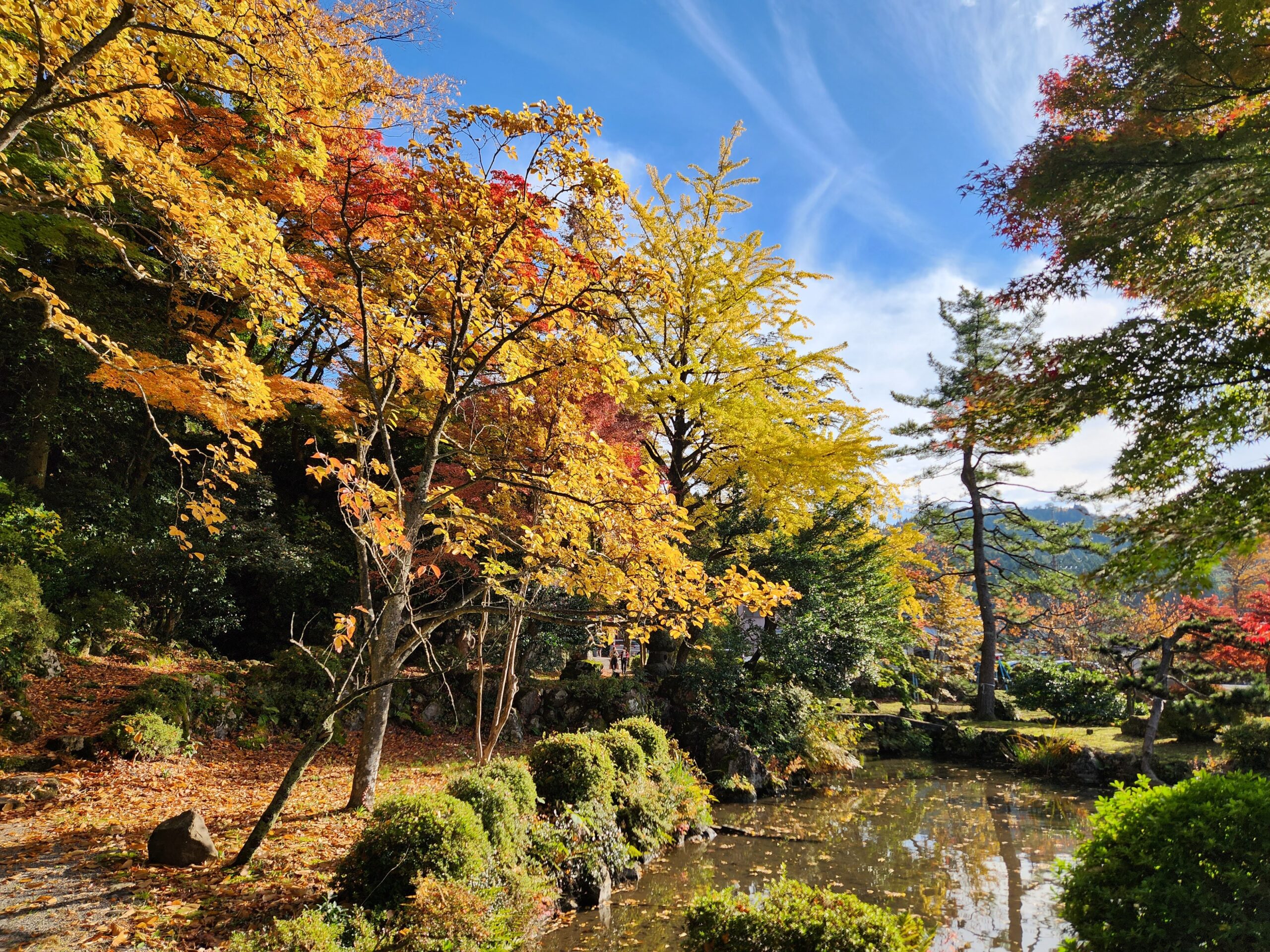 池のほとりでは、大きなイチョウの木が印象的でした。