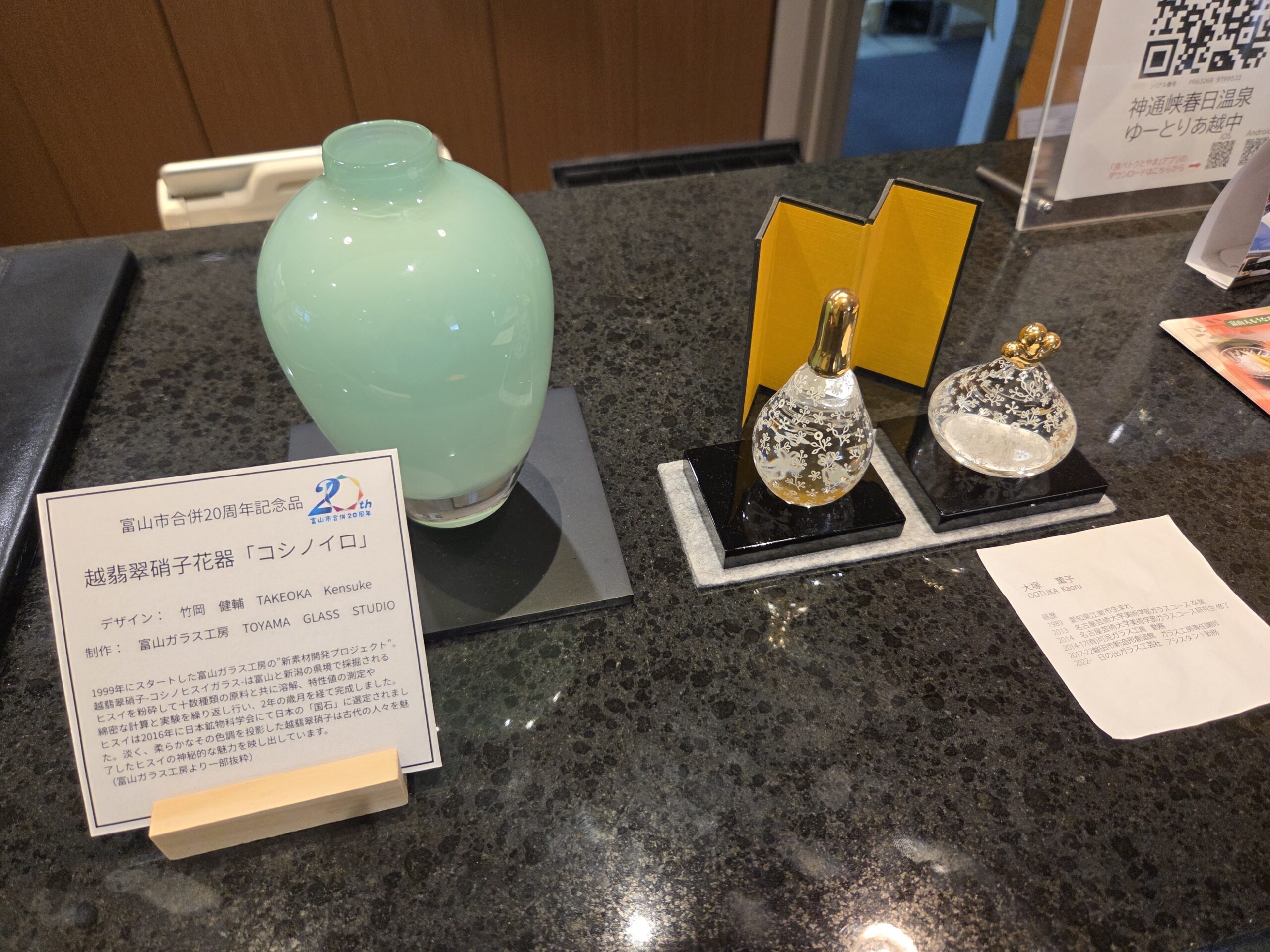 先日ご紹介した、富山市合併20周年記念品と並べて飾っています♪